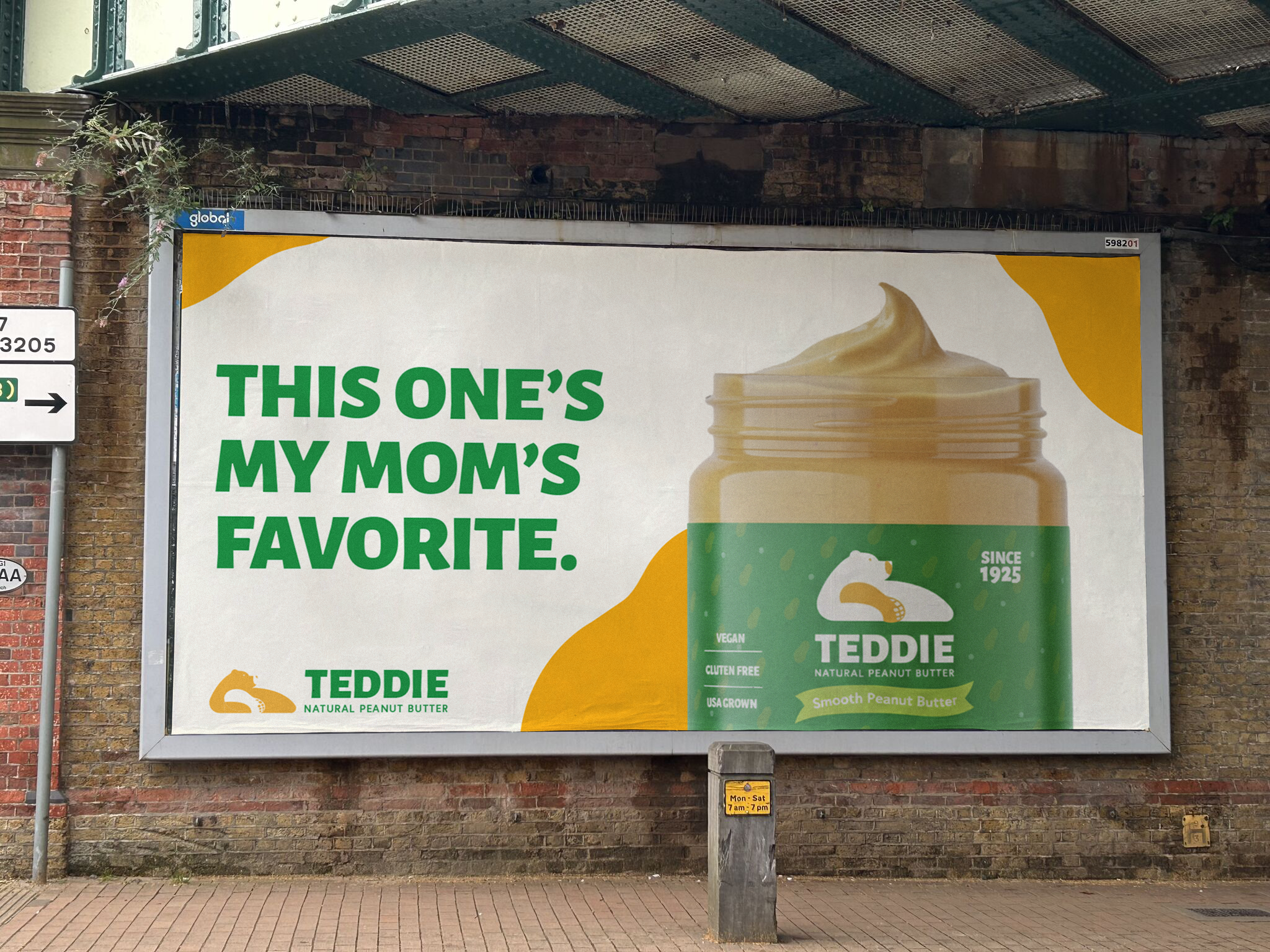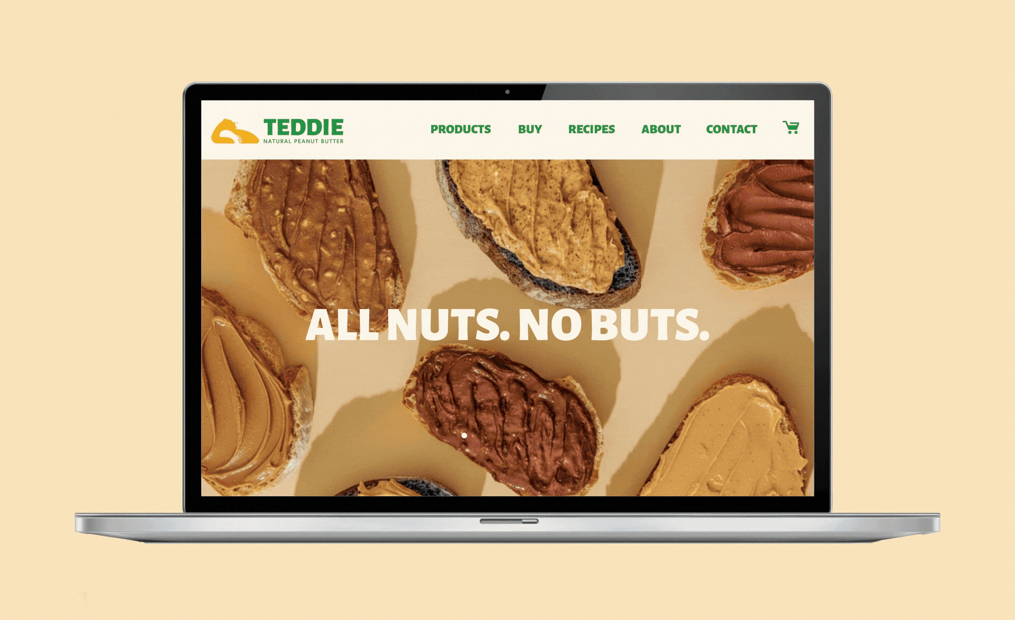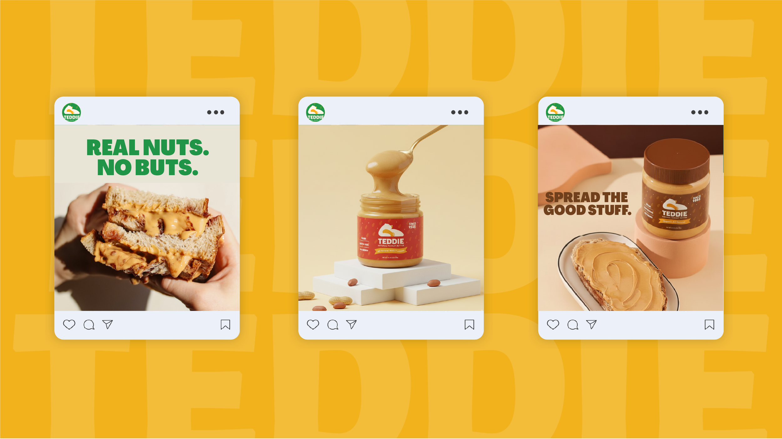 Teddie peanut butter is very well-known for people who are interested in health and fitness, however, their branding is falling behind. We revamped the brand with a brand new look and tagline: nuts about life. We redesigned the logo to be more simple and modern while keeping the signature reclining pose of the bear. The new color palette has a bright tone and signifies health, energy, and nature. The nuts pattern and the illustration of the bear are very eye-catching and versatile. They can be used for packaging or for social content.